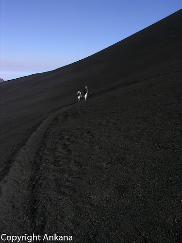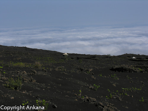 die Caldeira, eine Mondlandschaft, die vulkanische Geschichten erzählt. Hier war der Schauplatz von mehreren Vulkanausbrüchen, immer verbunden mit den Einwohnern der Orte Portela und Banageira in der Cha das Caldeiras. Zuletzt mussten diese 1995 evakuiert werden. Von der Pension Pedra Brabo in Portela - dort waren wir 3 Tage untergebracht - starten die Wanderungen zum Pico Pequeno, dem Ausbruchkrater von 1995 und natürlich hoch zum Pico de Fogo.